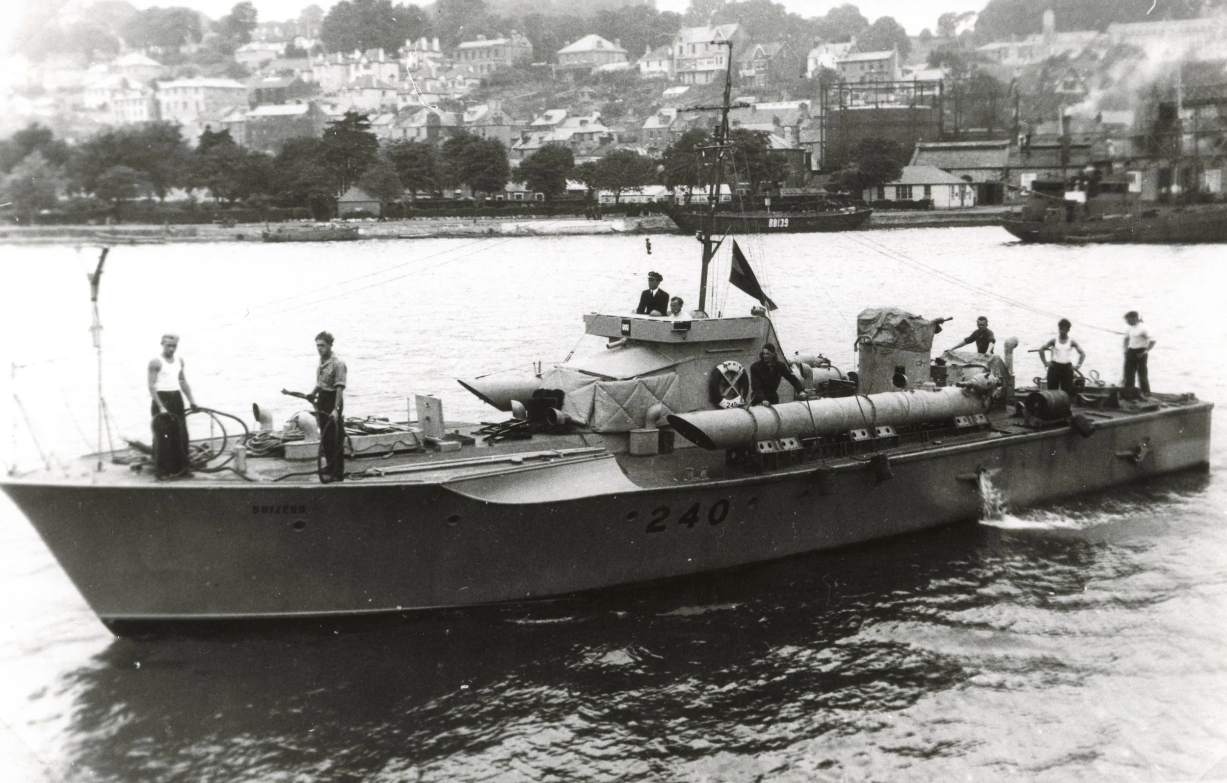 "Motor torpedo boat HNLMS MTB 240 enters the harbor of Weymouth."